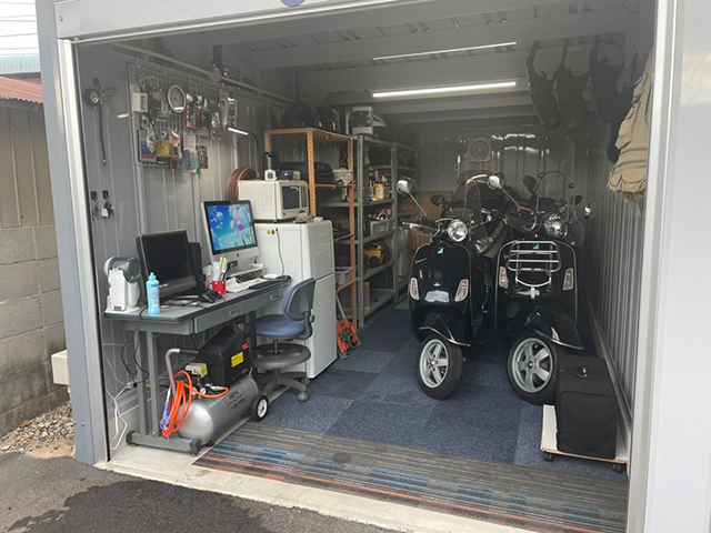 車から降りるのが精一杯のスペースというのはバイクの場合で考えると数台置いてかつ作業も可能な広さです。だから少し広めのガレージをバイクガレージとして借りれば余裕のあるガレージスペースとして使用できます。